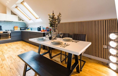 Introducing our beautiful new 2 bedroom loft apartment in Cardiff! Perfect for friends and families, this spacious and modern apartment is sure to make your stay comfortable and enjoyable. Enjoy the convenience of a large kitchen with a dishwasher, as well as fast wifi. Relax in the living room, or explore the great attractions that Cardiff has to offer. With easy access to public transportation and plenty of amenities nearby, you won't be disappointed! Make this your home away from home!