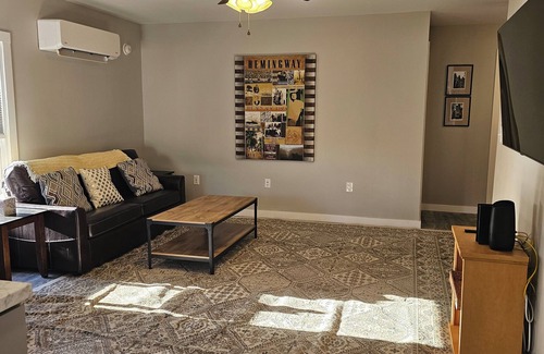 Make yourself at home in this 2-bedroom Bangor retreat. This adorable apartment features a cozy queen bed, comfortable full bed, and a queen sofa bed, perfect for a peaceful night's sleep. Enjoy the tranquil atmosphere as you relax in the living room or whip up a meal in the fully equipped kitchen. With amenities like WiFi, washer and dryer, and key less entry your stay will be convenient and stress-free. We hope you enjoy what our place and Bangor has to offer.