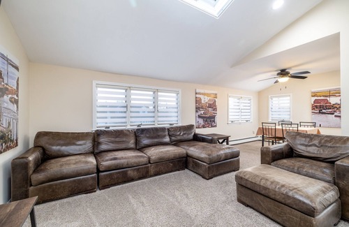 The fully equipped kitchen comes with all the utensils, pots, and pans you'll need to whip up delicious meals. Enjoy your culinary creations at the kitchen table or the secondary dining room table and then unwind on the large, comfortable couch in the living room, complete with Wi-Fi and a TV for your entertainment.