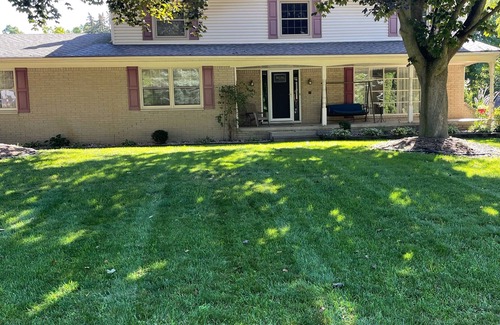 Come and enjoy our beautiful and clean home on the end of a quiet street. In this "Premier Hosted" location you can choose to sit on the front porch swing or the backyard patio and enjoy the beautiful trees, birds and bats during sunset. You have access to the full kitchen, basketball net, treadmill, office area, above ground pool, fire pit, washer and dryer, grill and deck. This home is within walking distance to Stoney Creek and 1 mile from the express way and grocery stores. There are numerous restaurants close by. We believe this is the perfect Suburban VRBO location to allow you to feel like you are away from it all. You can enjoy the beautiful views of the peaceful and private backyard year round. If you want to relax, rest and enjoy your family and friends, this is the vacation spot for you. This is not a party location. We are tucked into a quiet neighborhood with wonderful neighbors. All bedding, towels and beach towels are provided. Coffee is provided. Guests describe the home as "comfortable", " spacious" and "relaxing."