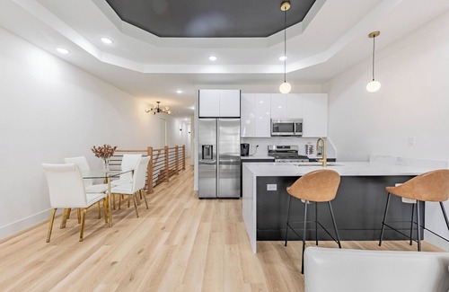 Stylish 3BD/2BA penthouse with high ceilings, oversized windows, stainless steel appliances, quartz countertops, in-unit laundry, and parking. Located in Bronzeville, just 10 mins to downtown, 8 mins to the University of Chicago, 18 mins to Soldier Field, and 25 mins to Midway Airport. Perfect for families or groups seeking comfort, convenience, and a premium city stay.