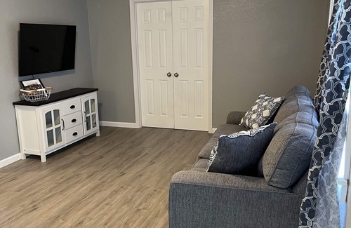 Getaway Tripp Cottage is a newly remodeled, spacious, 4 bedroom, 1.5 bath home with a large, private suite featuring a half bath. The cottage is in a quiet neighborhood located in the heart of Van Buren, just minutes from The Current River.