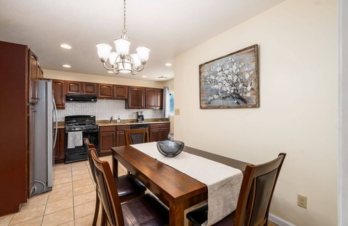 Your Columbus adventure begins at this 4-bedroom house. Each room boasts a king, queen, or full bed for a comfortable night's sleep. With 3 bathrooms equipped with bidets and hair dryers, guests can freshen up with ease. The living room even has a cozy sofa bed for extra sleeping space. Nestled in a tranquil neighborhood, this cool property offers a beautiful retreat for your stay. Book now and enjoy everything this house has to offer.