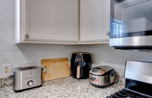 * Basic supplies like coffee, tea, oil, and spices are available.