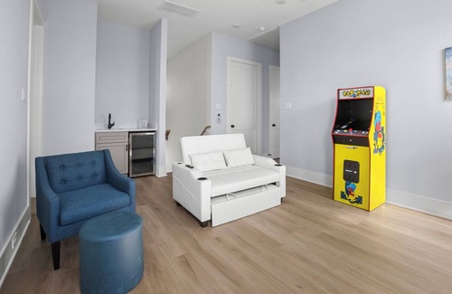 The game room has a sofa bed which let's out to the size of a twin bed