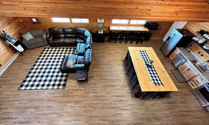 Bring the whole crew to enjoy this spacious lodge that is located directly across from the world famous Cody Night Rodeo! Plenty of space! Two living rooms and 2 full kitchens, two sets of washers and dryers. The lodge is made up of 3 different units A, B and C. This space can be rented all as one or in any combination you’d like. Contact me with any questions.