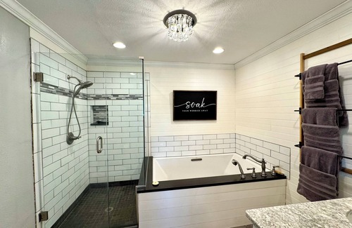 Get ready to relax in this adorable 5-bedroom farmhouse in Mount Vernon. This charming property offers a variety of sleeping arrangements, including a king bed, queen beds, and even a bunk bed for the little ones. With 3 bathrooms equipped with a jetted bathtub and large living room space, guests will feel right at home during their stay.