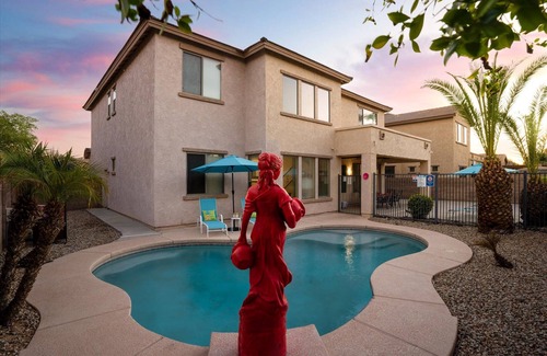 Get ready to relax in this marvelous 5-bedroom house in Litchfield Park. With 3 queen beds, 1 king bed, and 1 bunk bed, this wonderful property is perfect for families or groups of friends looking for a spacious retreat. The 3 bathrooms come equipped with a shower, bathtub, and hair dryer for your convenience. Enjoy all that Litchfield Park has to offer when you stay at our place.