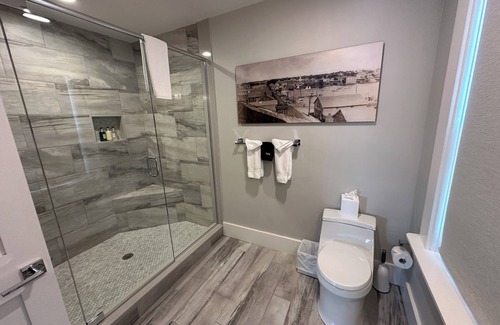Unit 6 is a one bedroom, dog friendly room in one of the most sought after locations in Newport. The room boasts a king size bed, a pullout queen size sofa, ample closet space, TV, and coffee station. There is a modern ensuite bathroom with a walk-in glass shower.