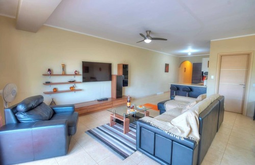 Nestled within the Misrah Simar Complex in Qala — a residential enclave featuring landscaped gardens, swimming pools, lush greenery, and quiet pathways — this apartment stands out as a refreshed haven with modern flair, offering a comfortable and relaxing stay, perfect for families or groups seeking a peaceful retreat.