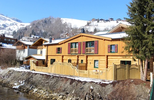 In the heart of Kaprun stands a unique semi-detached lodge made of real tree trunks. Ideal for families or friends who travel together and appreciate privacy. Each stylish lodge has a spacious living room, modern kitchen, 4 bedrooms, 3 bathrooms and a private sauna for relaxation after skiing. Suitable for 36 people but more comfortable for 28. Enjoy the sauna, cook together or explore nearby restaurants. There is no door connecting the accommodations