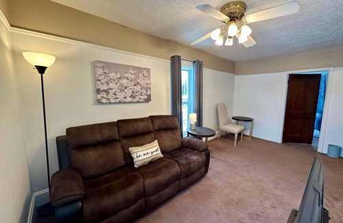 This upstairs apartment has a touch of vintage charm, with all the essentials for a pleasant stay. Guests will appreciate the character of this older home while enjoying modern conveniences and ample sleeping space.