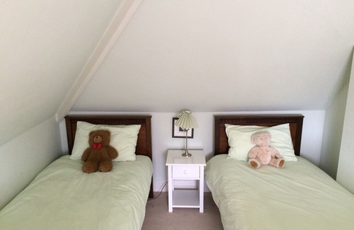 Large, comfortable eat-in farmhouse type kitchen with AGA, window seat and views of hills. Properly equipped kitchen - Le Creuset casseroles, decent cook's knives etc. The table in the kitchen seats 6 adults comfortably, 8 is cosy and 10 adults, you'd want to be friends. The house is very suitable for families and inter-generational stays and we often have children eat first then adults later. Having said that, we had New Year with adults, teenagers and younger children totalling 11 squeezed in - myself perched on a stool by the AGA. So it depends how you like it. Big front porch and generous utility room for all the beach stuff. Five bedrooms, (Super-king double, King double and twin on the 1st floor. Two twins on the 2nd floor.) All lovely, comfy beds, no bunk beds. One very large bathroom with separate shower cubicle and bath which has two entrance doors so may be ensuite if wished. One family bathroom with hand shower and bath. Both are the original twenties fixings with big baths in oak cases. The twin bedroom on the 1st floor has a sink which helps with teeth cleaning pressures. There is an extra separate loo upstairs, There is a cloakroom downstairs sporting the original Edwardian thunderbox. (4 loos in total)
