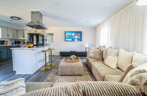 This spacious home provides everything you need for a relaxing and enjoyable stay. The entertainment area is perfect for unwinding, while the inviting living room features a flat-screen TV and a cozy couch—ideal for enjoying your favorite shows. With 4 bedrooms and 2.5 bathrooms, there’s plenty of space to comfortably accommodate families or groups.