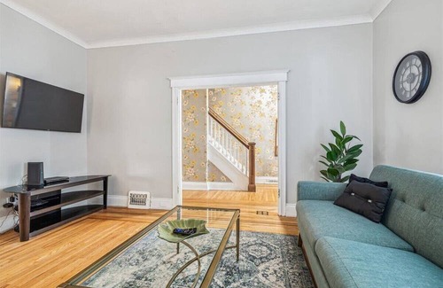 Located in the Blakeley neighbourhood of Hamilton, this 4-bedroom family home can comfortably host up to 8 guests at a time. All 4 bedrooms are located on the second level of the home, which is accessed by a staircase. Each bedroom has a queen sized bed and plenty of natural window light. There is one bathroom that has a standing shower.