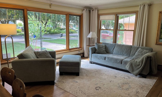 This newly renovated Saint Paul home is steps from Lake Phalen and only 10 minutes from downtown Saint Paul, and less than 20 from downtown Minneapolis. Set on a quiet, tree-lined street, it features 4 bedrooms, 2 bathrooms, 2 kitchens and multiple family rooms—perfect for groups or couples, with room for up to 8 guests. It’s ideal for shared stays while offering the privacy of an up/down duplex setup. Enjoy comfort, style, and convenience in this peaceful neighborhood retreat. Adjacent Phalen Regional Park features 500 acres of greenspace, lake, and golf course.