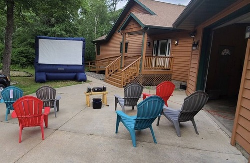 Perfect for entertaining, the property sits on 5 acres with a level, sandy beach, 300 feet of shoreline, 150 feet of swimming, and two docks on Lake Belle Taine. We are 1/4 mile from the Heartland trail, 3 miles to Dorest, and to Nevis. Enjoy an array of amenities, including a Weber propane three-burner grill, outdoor patio tables seating 20, 2 paddle boards, 2 kayaks, a pedal boat, and life jackets for 10. The outdoor entertainment continues with a campfire area with chairs for over 20 people, 2 sets of cornhole boards, several outdoor games, and a kid's shed full of beach toys.