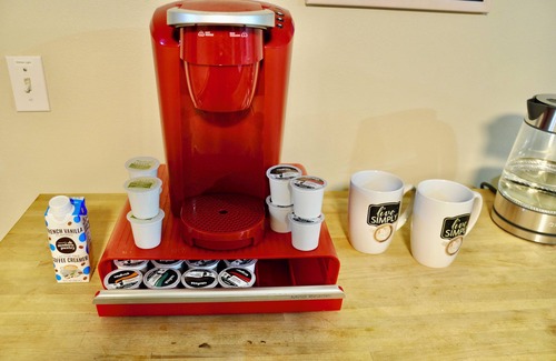 - Keurig coffee maker & electric kettle (with coffee pods and tea provided)