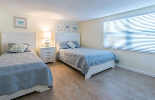Unit 112 is the perfect place to get away and relax for you or the whole family. The building is situated directly on the beach and the unit has been completely renovated. There is free high-speed wireless internet and an in-unit washer and dryer for your convenience. The master bedroom has a king size bed, the guest bedroom has a queen and twin bed, and there is a queen sized air mattress for additional sleeping (not a sleeper sofa).