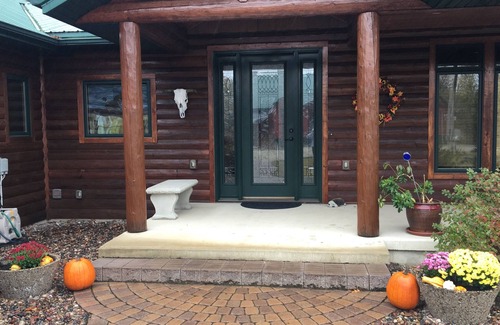 Log sided home over looking the Root River Valley. Spacious kitchen, dining, and living areas with a total of over 4,500 square feet to spread out. If more space is needed to spread out or for extra guests we have a bunk house attached to the shed that is furnished with a kitchenette, queen bed, bunk beds, bathroom, and air conditioning, heat, and gas fireplace. Just let us know you are interested and we can check availability and send a quote for the combination. Pictures of the bunk house are included on VRBO. Check and and you will not find a place in the area with this much space and well maintained. There is a beautiful outside patio with a fire pit for your enjoyment. Guests have access to the house, lawn area, fire pit, and walking trails.