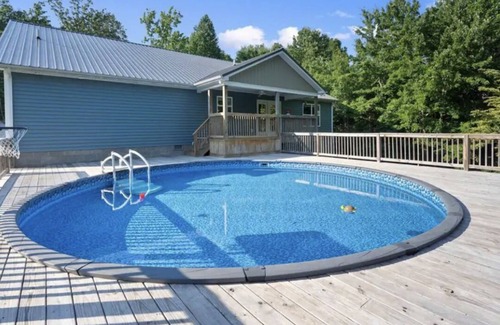 Situated less than 1 minute from the beautiful Mammoth Cave National Park, this brand new home places you right in the middle of all the area has to offer. The home sleeps eight with 4 bedrooms. Please invite family and friends as there is an RV hook up. There is a porch on the back of the house along with a grill and a pool so you can have the most relaxing experience with your family and friends. Pet friendly! Free parking.