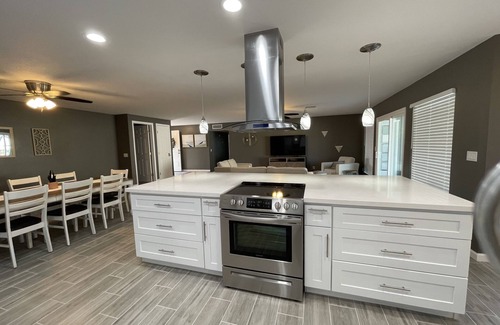 Newly renovated home in established, quiet Peoria neighborhood. Large indoor and outdoor gathering areas. Updated pool and patio, with patio furniture, pool towels, and grill. Comfortable, elegant, and simply relaxing.