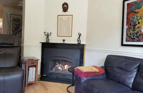 The main floor has two living room areas with stereo, fireplace, TV, couches and piano, dining area (good workspace), half bathroom and kitchen fully stocked with the essentials including coffee and tea. The 2nd floor has a Master king bedroom with ensuite bathroom and couch, a queen bedroom with desk workspace and bathroom next door, a 3rd bedroom with a single bed and treadmill, and a family/exercise open hang room with a TV, elliptical machine, games, sleep futon couch and workspace at coffee table. Fast wifi.