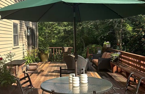 Bring the whole family to this spacious retreat, perfect for fun and relaxation. Just minutes from Downtown Falmouth and Woods Hole, with easy access to ferries to Martha’s Vineyard. Ideal for families, this home accommodates up to 10 guests with three king beds, two full beds, and a crib. Enjoy a large, fully-equipped kitchen and a private, peaceful yard in a quiet neighborhood. Close to a private beach and 400 acres of nearby woods with scenic walking trails. Plus, you're close to the bike path for even more outdoor adventure!