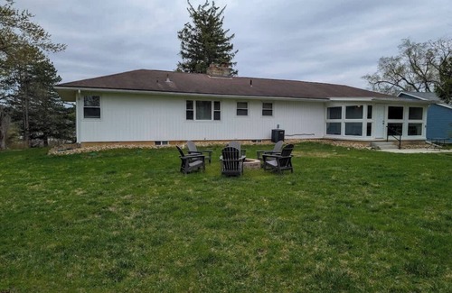 After a day at the Columbus Zoo or Zoombezi Bay, come home to unwind on the enclosed porch or gather around the fire pit under the stars. Inside, enjoy friendly games of foosball and air hockey, or kick back with a drink at the bar. With a king bed, queen bunks, and cozy spaces for everyone, this home is made for laughter and connection. Send us a message to start planning your stay!