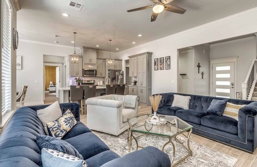 Kick back and relax in this calm, stylish space. Fully furnished two story home features 4 Bedrooms, 3 Bathrooms, 3 Car Garage, and family room. Upon entering the home, you'll find yourself in the spacious open-concept living area boasting a relaxing living room with a smart TV, fireplace and stylish modern decor.