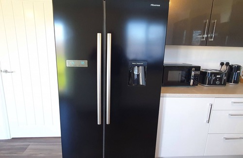 The House also comes with a spacious modern Kitchen with mostly integrated Appliances. Cooking utensils, Plates, cups and cutlery is provided for guest's use.