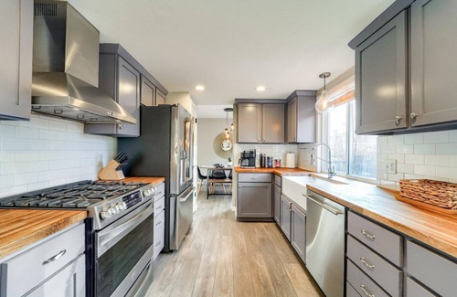 Hello Colorado! Perfect for groups & centrally located for easy access to Golden, Denver, Boulder, Red Rocks & the mountains. You’ll enjoy two amazing game rooms: a wet bar, pool table, hand-shuffleboard, ring toss, jumbo connect 4, and the popular Simpsons AND Street Fighter arcade games. There is also an array of board games available. Don’t miss the chance to stay at home at this spacious two-story 5bd, 4-bath property!