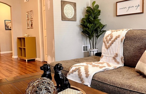 Experience the charm of Tower Grove South from our inviting 2 bedroom nestled on the first floor of our quaint six-unit apartment building. This private retreat offers a comfortable haven equipped with Roku TVs, complimentary linens and towels, a dedicated workspace, and convenient access to a washer/dryer in the basement. Ample street parking and all the essentials ensure a delightful stay in our home away from home.