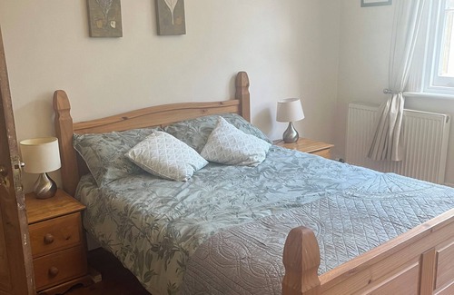 and consists of two double bedrooms, lounge with TV, kitchen with fridge, cooker, washing machine and dishwasher, bathroom with toilet, sink and bath with overhead thermostatically controlled shower, separate toilet with sink, and hallway in a conversion flat with central heating. The kitchen is fully equipped with everything needed for a stay. It is Ideal for a couple, friends or a family group. WiFi is included. There is a garden and patio area.