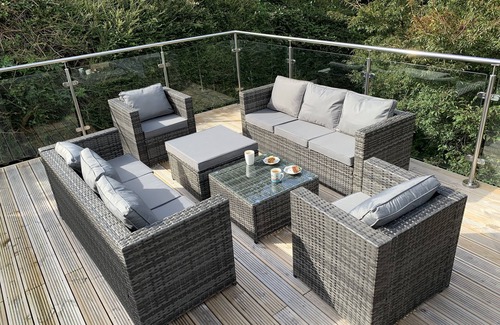 Bedrooms include a beautiful vaulted master bedroom with en-suite and king size bed, a twin bedroom, double with queen sized bed and a family room with queen bed plus bunk beds. A comfortable double sofa bed is also available in the upstairs lounge. So sleeps 10 without the sofabed or 12 including the sofabed.