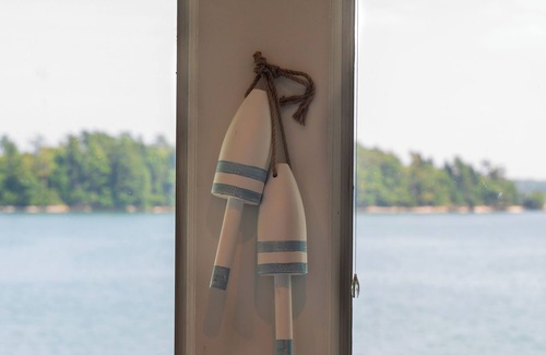 There are 2 Queens and a King upstairs and one Queen downstairs master. All beds have brand new (2020) mattresses. The upstairs master suite has a king-size bed, stunning panoramic views to the outer islands and an attached 3-season screen porch room.