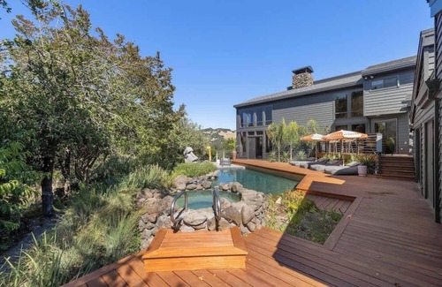 Set on over 55 acres offering privacy and serenity, our wine country estate will transport you to another time and place. It has been completely renovated while staying true to its 70s roots. Enjoy the sunken conversation pit, a grotto-style pool with hot tub and cascading waterfall, and your own private tennis court. Perfect for large groups who want privacy as well as almost every amenity you can imagine.