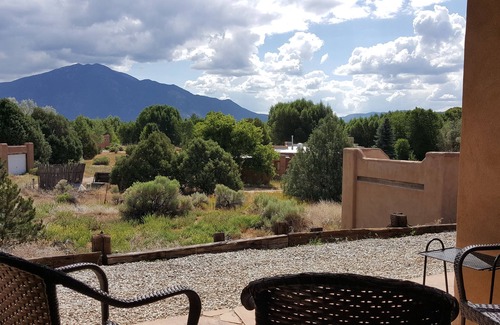 This charming traditional-style adobe home with viga ceilings, wood burning fireplace, and a flagstone covered patio, sits on a hilltop offering expansive views of the Taos Mountains and the Wheeler Peak range. Located just 5 miles from the Taos town center, this comfortable and quiet family home is only minutes away from restaurants, shopping and local attractions. The Taos ski valley, which is only 13 miles away, offers a multitude of outdoors activities year-round.