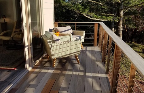 Inside Haro Haiku you'll find a contemporary blend of furnishings. The interior lets the outside in through widow placements and large sliding doors out to a full length deck.