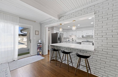 The Home: This 3,400 sq ft house features 4 bedrooms + a finished walk-out basement and 3.5 baths. The kitchen is perfect for the home chef with high end appliances and the large breakfast bar seats 5 people. The kitchen opens up into a spacious great room with a dining nook and living area to relax and watch TV. The formal dining room around the corner provides additional space for guests to enjoy meals. Off the foyer is a dedicated office space - perfect for those who might need to WFH. Upstairs, you will find 4 bedrooms and 2 full baths - 1 room with a king bed, 2 rooms with queen beds, and one room with a queen bed as well as a twin day bed w/ twin trundle. Downstairs is a finished walkout basement featuring a bar, an additional full day bed, a full bathroom, and plenty of space to enjoy games.