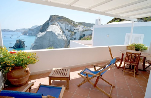 Nestled in the rock of Cala Inferno, surrounded by greenery and overlooking the sea where the white of the walls contrasts the blue of the sea and there is a splendid villa in Le Forna, just 5 kilometers from the Port of Ponza.