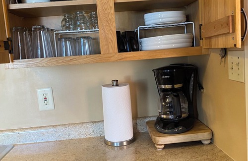 Outdoor features include a patio, picnic table w/umbrella, lawn chairs, charcoal grill and campfire ring. (Firewood furnished for a nominal fee). Swimming area with swim raft, use of our kayaks, paddle boats, canoes and row boats. (Pontoon boat/fishing boat w/motor- limited availability w/separate reservation).