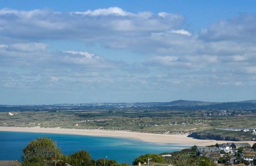 The beach is backed by picturesque sand dunes. West Cornwall Golf Club overlooks the beach. The neighbouring beach of Carbis Bay, which sits the other side of the Hawks Point headland