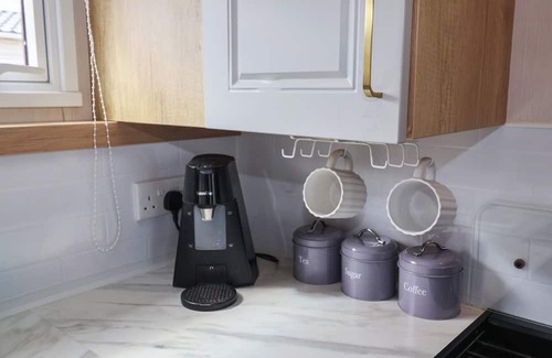 Amenities: Central heating. Oven, hob, microwave, fridge, kettle, toaster, coffee machine. TV, WiFi. Fuel, power, bed linen and towels inc. in rent. Off-road parking for 1 car. Enclosed decking with furniture. Sorry, no pets and no smoking. Shop 3.3 miles, pub 1.9 miles. Note: On-site facilities include a leisure club with pool, sauna and steam room, an 18-hole golf course, spa treatments, and beauty rooms. Note: EV Charging facilities available on site.