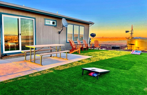 But wait! The best is yet to come! Step out into the yard, where you can catch a breath of fresh air, soak up the sun, and marvel at the stunning desert ambiance, scenic sunsets, moonrises, and an impeccable view of the Milky Way. The area has zero light pollution, making it perfect for stargazing.