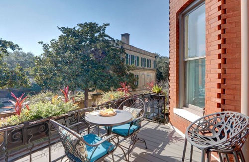 Elegant 1894 Victorian in the Historic Heart of the city! Rare 2 Car Garage! Sleeping 6, 2.5 baths, a private courtyard, deck & balcony overlooking the Owens Thomas House garden and Oglethorpe Sq. Do you want to be in the thick of the Savannah action? Then this is the place for you. No more Ubers or worrying about where to park. Before the day starts, or after it ends, return to the quiet of the jasmine draped front porch, private lush rear garden, or peaceful upper balcony.