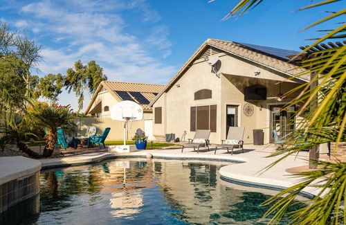 Welcome to the Cozy Cactus! Our lovely home located in beautiful Goodyear, Arizona offers 4 bedrooms, 2 full bathrooms, and 2,200 sq ft of space. Enjoy mornings under the covered patio that overlooks the pool, and spend your nights grilling or relaxing by the firepit. We’re conveniently located near State Farm Stadium (in Glendale, home of SuperBowl 2023 and only 18 min away!), Goodyear Ballpark/Baseball Spring Training (only 5 minutes!) and the Phoenix Raceway (13 minutes). We’re surrounded by restaurants, golf courses, shopping and entertainment- you’re going to love it here!