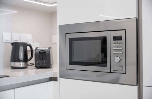 You will find hotel-grade bed linen and towels, along with initial toiletries like shampoo and soap, ensuring a comfortable arrival experience. Additionally, complimentary tea and coffee will be provided to get you started, and you will find several grocery stores within walking distance.