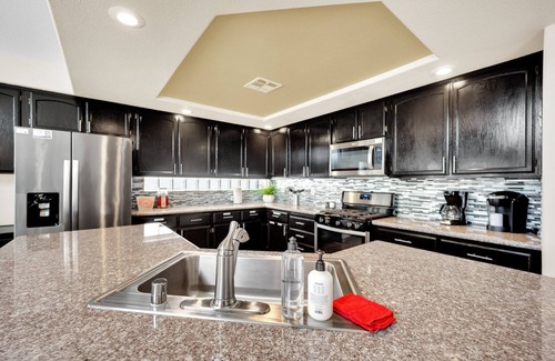 At Stella Vacation Villa, the fun never stops. Gather around the 65-inch flat-screen TV with surround sound for a movie night, challenge your crew in the sunken game room with a brand-new pool table, darts, and a fireplace, or mix up a cocktail at the wet bar before heading outside. The outdoor entertainment area is just as inviting, featuring a covered patio, a ping pong table, and classic backyard games like corn hole. Whether you're sipping morning coffee in the fresh air or winding down under the stars, this space is designed for connection and relaxation.