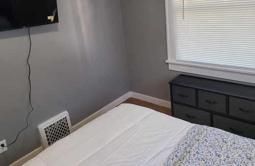 Be among the first to stay in this newly remodeled 2 bedroom home less than a block from Emporia State University and the downtown area where the all the biking, disk-golf, and community activities happen. Tons of amenities including Wi-Fi, laundry machines, kitchen full of cooking and baking supplies, TV in each room, and good parking.
